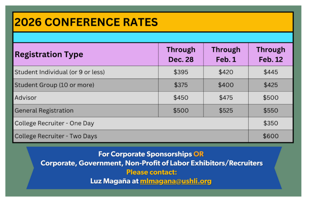 The USHLI Conference has become the largest annual gathering for students, young professionals and emerging leaders in the nation. Attendees comprise a complete cross-section of our leadership community and include all ethnic and racial groups. Our national conference provides an extraordinary opportunity for participants to interact with multi-level academic and employment recruiters, public policymakers, expert presenters and hear nationally prominent, standing-ovation-quality speakers. This conference will enable participants to strengthen their leadership skills, access resources, reinforce their cultural identity, and grow their servant leadership capability.